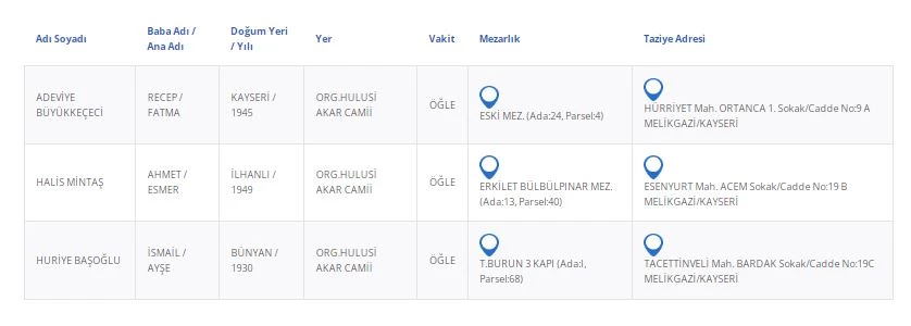Kayseri’de bugün 3 vatandaşımızı kaybettik. Kayseri’de bugün vefat edenler kimler?