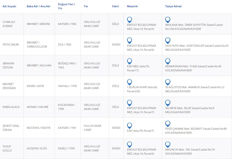 Kayseri’de bugün 7 vatandaşımızı kaybettik. Kayseri’de bugün vefat edenler kimler?