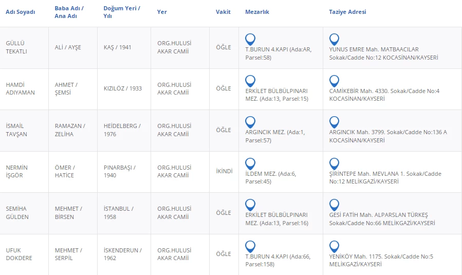 Kayseri’de bugün 6 vatandaşımızı kaybettik. Kayseri’de bugün vefat edenler kimler?