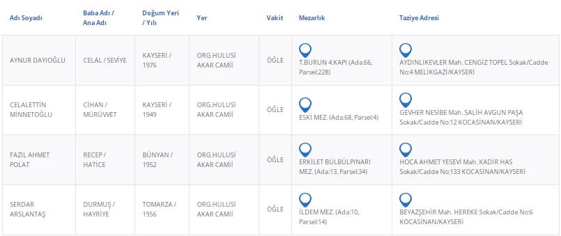 Kayseri’de bugün 4 vatandaşımızı kaybettik. Kayseri’de bugün vefat edenler kimler?