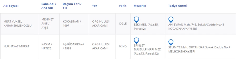Kayseri’de bugün 2 vatandaşımızı kaybettik. Kayseri’de bugün vefat edenler kimler?