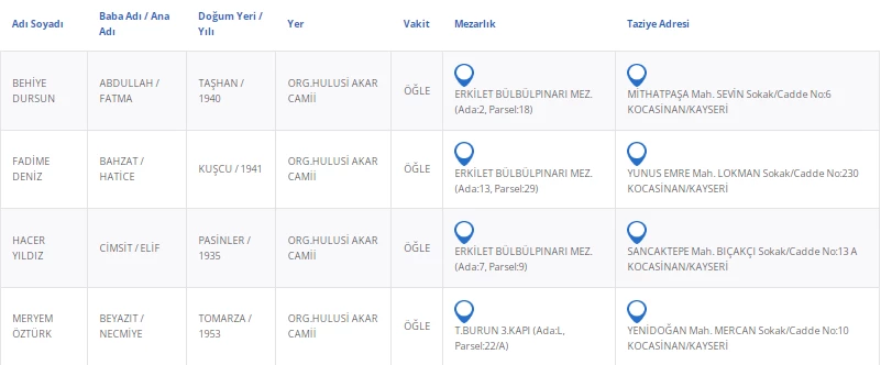 Kayseri’de bugün 4 vatandaşımızı kaybettik. Kayseri’de bugün vefat edenler kimler?