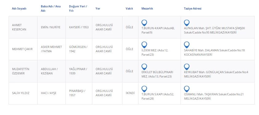 Kayseri’de bugün 4 vatandaşımızı kaybettik. Kayseri’de bugün vefat edenler kimler?