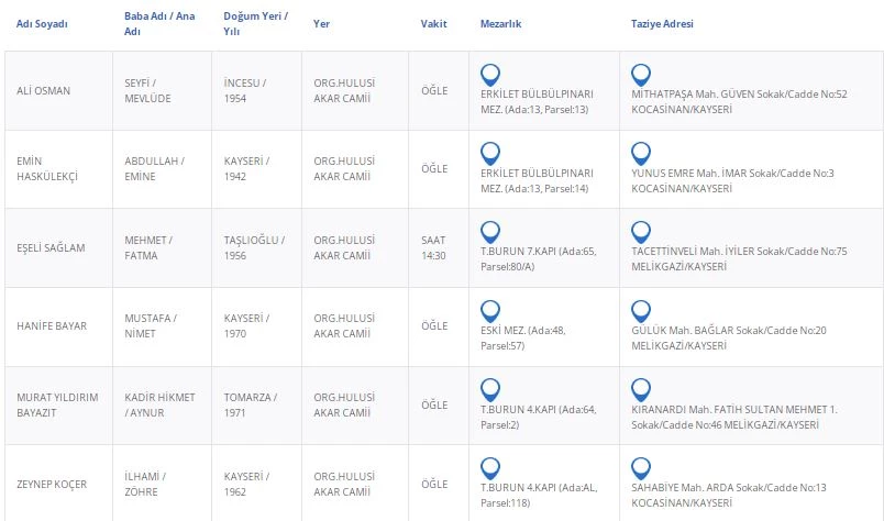 Kayseri’de bugün 6 vatandaşımızı kaybettik. Kayseri’de bugün vefat edenler kimler?