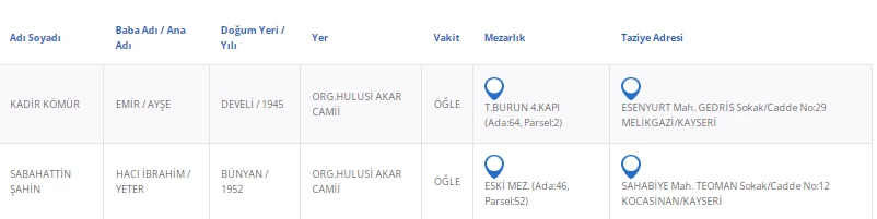 Kayseri’de bugün 2 vatandaşımızı kaybettik. Kayseri’de bugün vefat edenler kimler?