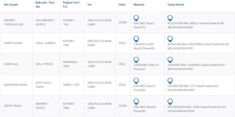 Kayseri’de bugün 5 vatandaşımızı kaybettik. Kayseri’de bugün vefat edenler kimler?