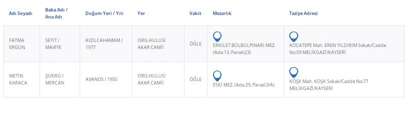 Kayseri’de bugün 2 vatandaşımızı kaybettik. Kayseri’de bugün vefat edenler kimler?