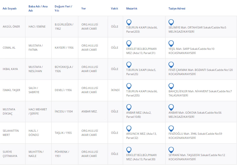 Kayseri’de bugün 7 vatandaşımızı kaybettik. Kayseri’de bugün vefat edenler kimler?
