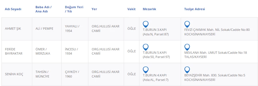 Kayseri’de bugün 3 vatandaşımızı kaybettik. Kayseri’de bugün vefat edenler kimler?