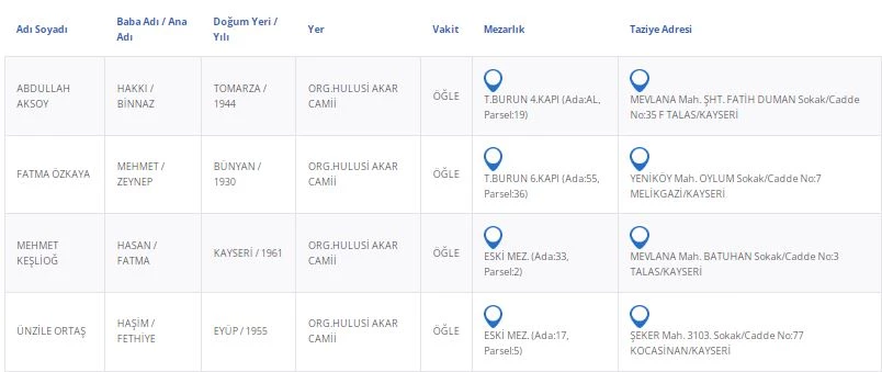 Kayseri’de bugün 4 vatandaşımızı kaybettik. Kayseri’de bugün vefat edenler kimler?