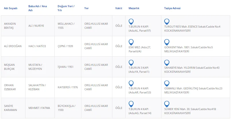 Kayseri’de bugün 5 vatandaşımızı kaybettik. Kayseri’de bugün vefat edenler kimler?