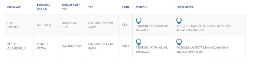 Kayseri’de bugün 2 vatandaşımızı kaybettik. Kayseri’de bugün vefat edenler kimler?