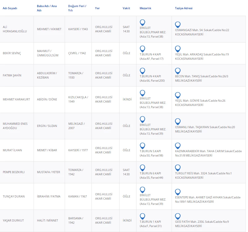 Kayseri’de bugün 4 vatandaşımızı kaybettik. Kayseri’de bugün vefat edenler kimler?