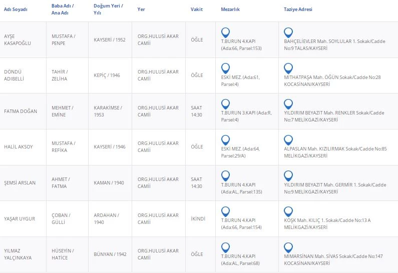 Kayseri’de bugün 7 vatandaşımızı kaybettik. Kayseri’de bugün vefat edenler kimler?