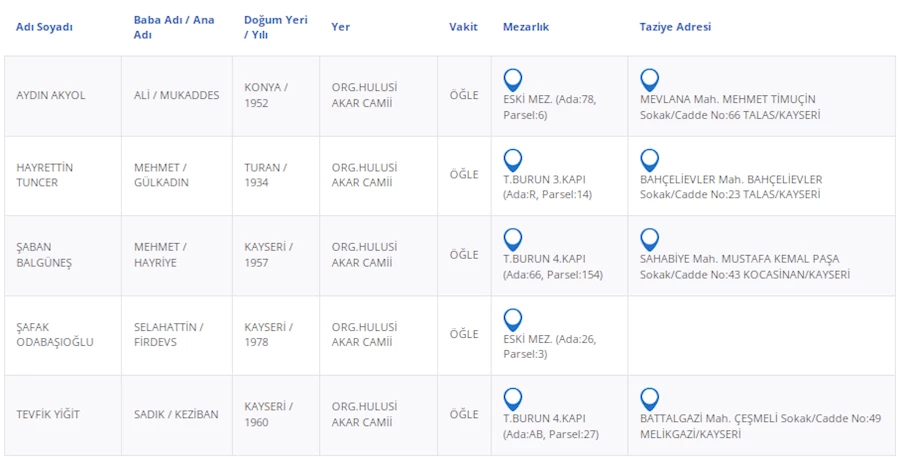 Kayseri’de bugün 5 vatandaşımızı kaybettik. Kayseri’de bugün vefat edenler kimler?