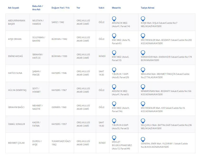 Kayseri’de bugün 8 vatandaşımızı kaybettik. Kayseri’de bugün vefat edenler kimler?