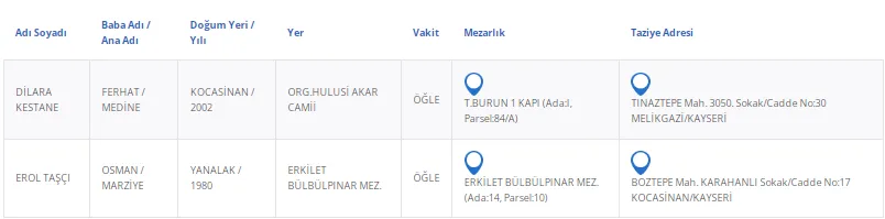 Kayseri’de bugün 2 vatandaşımızı kaybettik. Kayseri’de bugün vefat edenler kimler?