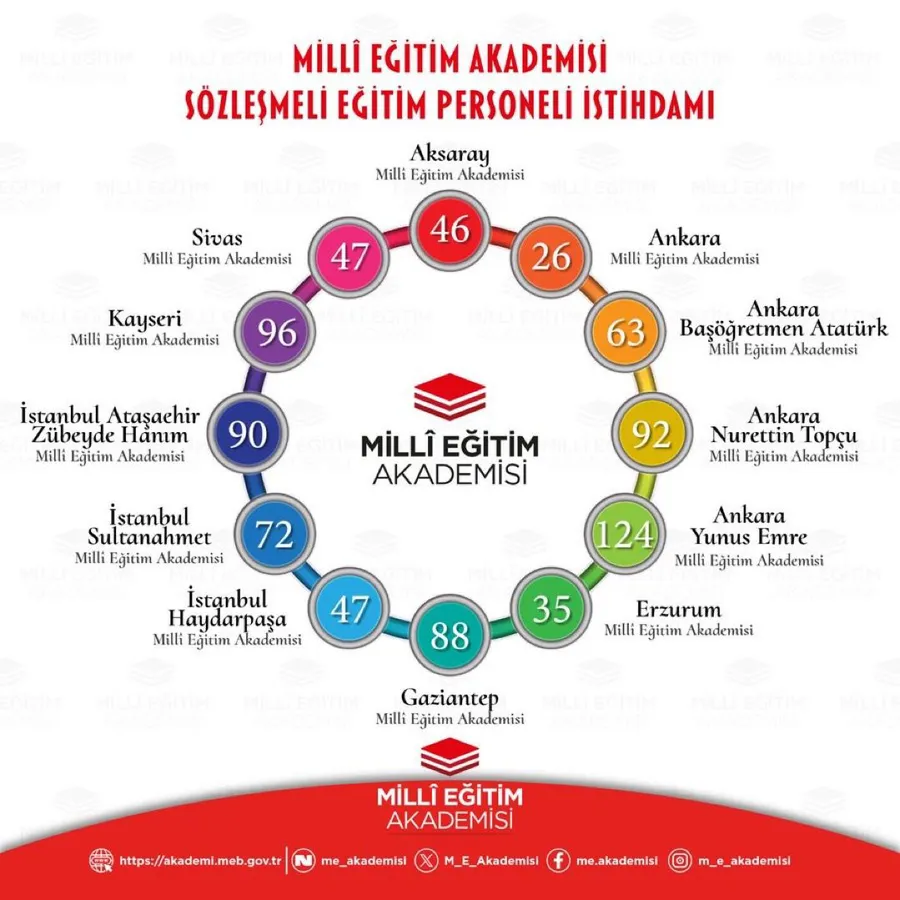 Öte yandan Millî Eğitim Bakanlığı tarafından yayımlanan ve Resmî Gazete’de yer alan ilana göre, Millî Eğitim Akademisi bünyesinde toplam 826 sözleşmeli eğitim personeli istihdam edilecek. Kontenjanların illere göre dağılımı açıklanırken, Kayseri Eğitim ve Uygulama Merkezi için 96 kişilik kontenjan ayrıldığı bildirildi.