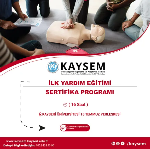 Kayseri Üniversitesi bünyesinde faaliyet gösteren KAYSEM tarafından düzenlenen İlk Yardım Eğitimi Sertifika Programı, vatandaşlara olası kaza ve acil durumlarda hayat kurtaracak bilgi ve becerileri kazandırmayı amaçlıyor.