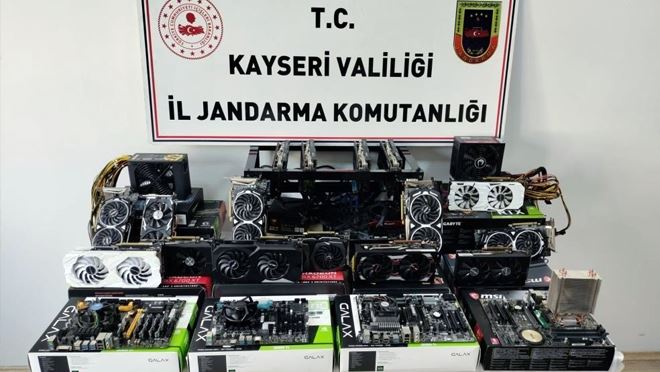 İl jandarma komutanlığı ekipleri tarafından Kayseri Cumhuriyet Başsavcılığının koordinesi ile gümrük kaçağı kripto para üretim cihazı (Mining) üzerinden kripto para üretimi yapan şahıslara yönelik çalışma başlatıldı. Yapılan çalışmalar sonucunda Kocasinan ilçesinde tespit edilen 2 adrese operasyon düzenlendi. İkametlerde yapılan aramalarda 5 adet anakart, 25 adet ekran kartı, 5 adet güç kaynağı, 4 adet USB bellek, 4 adet ram, 1 adet cep telefonu ve 4 adet mining sistemi ele geçirildi.