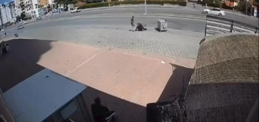 Kayseri’nin Melikgazi ilçesine bağlı Gökkent Mahallesi’nde Kocasinan Caddesi üzerinde elektrikli scooter ile ilerleyen 2 kişi, yol kenarında duran çöp konteynerine yavaş şekilde çarptı.