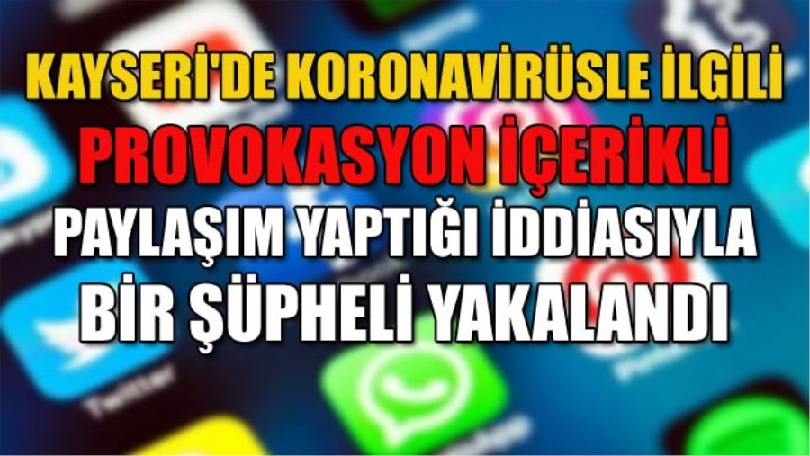 Kayseri'de yeni tip koronavirüsle ilgili sosyal medyadaki provokasyon içerikli paylaşımlara yönelik soruşturma kapsamında bir şüpheli gözaltına alındı.