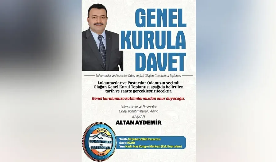 Kayseri’de oda seçim süreci devam ederken, gözler bu kez Lokantacılar ve Pastacılar Odası’na çevrildi. Esnafın yeni dönemdeki yol haritasını belirleyecek Seçimli Olağan Genel Kurul için tarih netleşti. Detaylar Kayseri Haber'de...