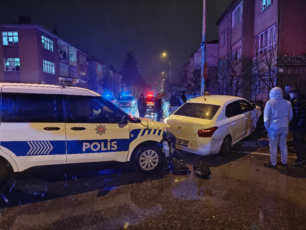 Edinilen bilgiye göre, Yenişehir Mahallesi Şinasi Caddesi’nde meydana gelen trafik kazasında polis aracı ile M.Ç. yönetimindeki 38 AOH 261 plakalı otomobil çarpıştı. İhbar üzerine bölgeye polis, sağlık ve itfaiye ekipleri sevk edildi. Polis ekipleri çevrede güvenlik önlemi alırken, sağlık ekipleri de kazada yaralanan M.Ç.’yi olay yerindeki ilk müdahalenin ardından ambulansla hastaneye kaldırdı. Çalışmaların ardından polis aracı ve otomobil çekiciyle yoldan kaldırıldı.