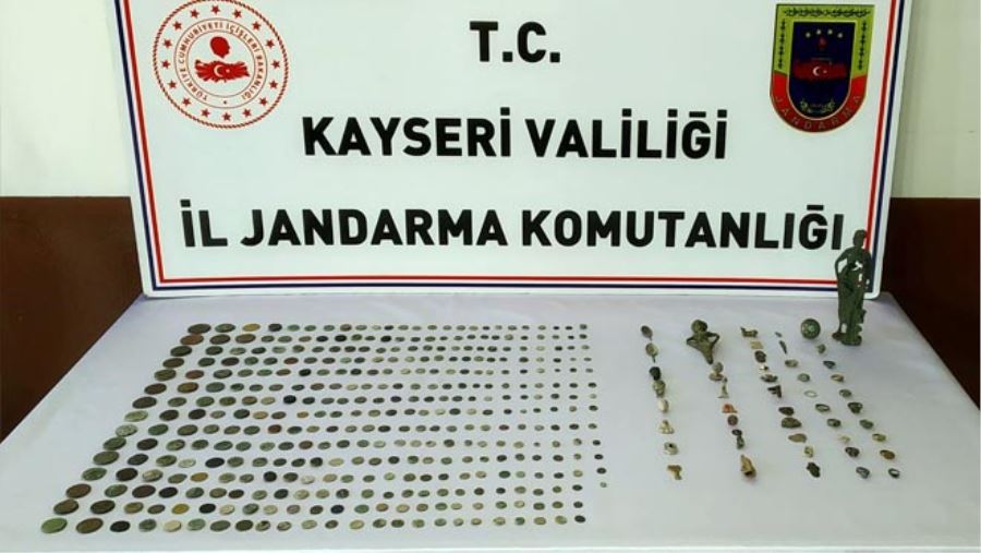 Kayseri İl Jandarma Komutanlığı ekiplerince yapılan çalışmalarda Roma dönemine ait çok sayıda sikke, heykel, yüzük ve mühür ele geçirildi. Olayla ilgili 2 kişi gözaltına alındı.