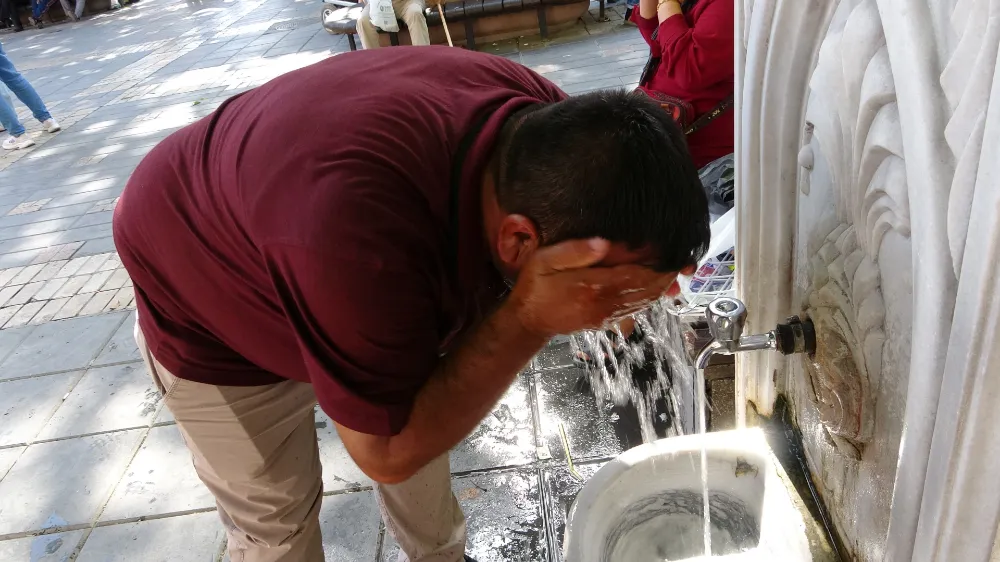 Kayseri'de termometreler 39 dereceyi görürken, sıcaktan bunalan vatandaşlar gölge alanlarda suyla serinlemeye çalıştı.