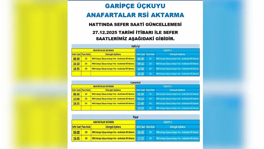 Özellikle okulların açılması ile birlikte güzergah ve sefer saatlerinde yaşanan değişiklikler vatandaşları ve öğrencileri çok yakından ilgilendiriyor. Bu doğrultuda gerçekleştirilen güzergah ve sefer saati değişikliklerine ilişkin bilgiler haberimizde. Öte yandan vatandaşlar detaylı bilgiye KBB Trafik mobil uygulaması ile ALO 153 Beyaz Masa hattında ulaşabiliyor.