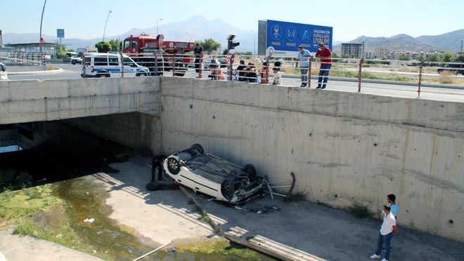 Edinilen bilgiye göre, Kocasinan ilçesi Bekir Yıldız Bulvarı üzerinde meydana gelen trafik kazasında, Mustafa B. (29) yönetimindeki 06 KOB 18 plakalı otomobil, sürücüsünün direksiyon hakimiyetini kaybetmesi sonucu kanala uçtu. İhbar üzerine olay yerine sağlık, itfaiye ve polis ekipleri sevk edildi. Polis ekipleri kazanın meydana geldiği yolda güvenlik önlemi alırken, itfaiye ekipleri de kanala inerek yaralıyı araçtan çıkardı. İtfaiye merdiveni ile yaralıyı çıkaran ekipler, ambulansa teslim etti. Mustafa B., ambulansla Kayseri Şehir Hastanesine kaldırılarak tedavi altına alındı. Kana uçan araçta çekici ile kaldırıldı.