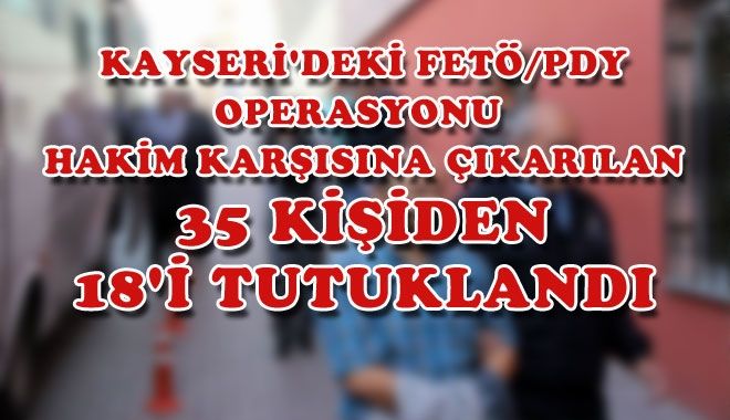 Kayseri merkezli 15 ilde FETÖ/PDY operasyonu çerçevesinde gözaltına alınan 141 ´Bylock´ kullanıcısından 35´i adliyeye sevk edilmişti. Adliyeye çıkarılan 35 kişiden 18´i tutuklanarak cezaevine gönderildi.