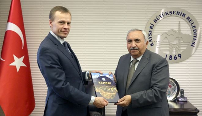 Litvanya´nın Ankara Büyükelçisi Audrius Bruzga´yı Büyükşehir Belediyesi Başkan Vekili Mehmet Savruk ağırladı. Ziyaretinde Kayseri´ye ilk kez geldiğini ifade eden Büyükelçi Bruzga, "Kayseri´ye ilk kez geliyorum; ama Kayseri´yi Litvanya´da tanıyoruz. Ticaret ve turizm potansiyelinin yüksek olduğunu biliyoruz. Buraya Litvanya´nın fotoğraf sergisinin açılışı için geldik. Kayserililere Litvanya´yı tanıtmak istiyoruz. Buradaki işbirliği fırsatlarını görmek istiyorum" dedi. Büyükşehir Belediyesi Başkan Vekili Mehmet Savruk da Kayseri hakkında konuk Büyükelçi´ye bilgiler verdi. Kayseri´nin tarihinden de bahseden Savruk, "Kayseri sanayi ve ticaret kenti. Kayseri girişimcilerin bulunduğu bir kent. Sayın Büyükelçi´nin Kayseri´ye gelmesinin Kayseri ile Litvanya arasında olumlu gelişmeler sağlamasını arzu ediyorum" diye konuştu.