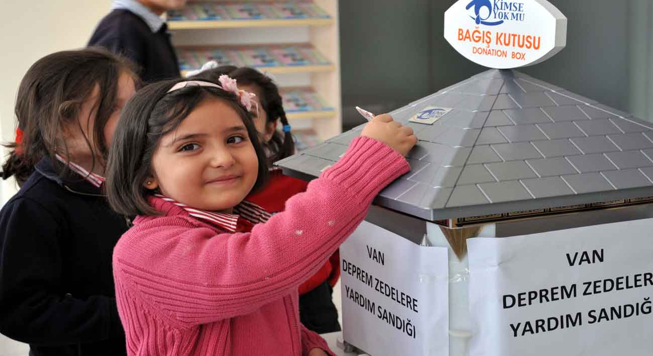 Kampanya kapsamında okulun girişine konulan Kimse Yok Mu Derneği'nin kumbarasına öğrenciler, harçlıklarını ve biriktirdikleri paraları attı.