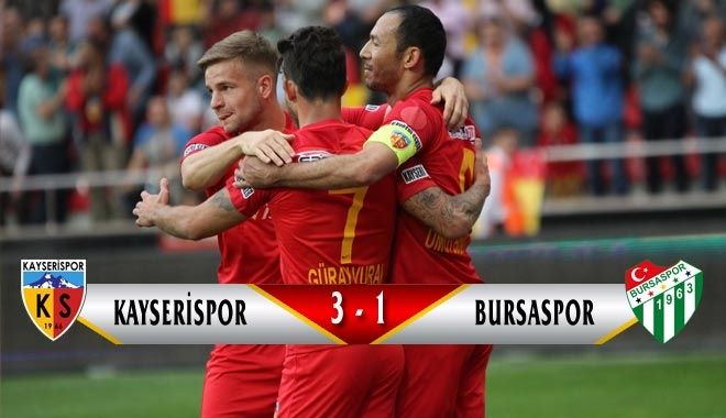 Süper Lig´de sahasında Bursaspor´u konuk eden Kayserispor muhteşem bir galibiyet alarak sahadan 3-1 galip ayrıldı. Kayserispor bu galibiyetle puan sıralamasında maç fazlasıyla ligin ikinci sırasına yerleşti.