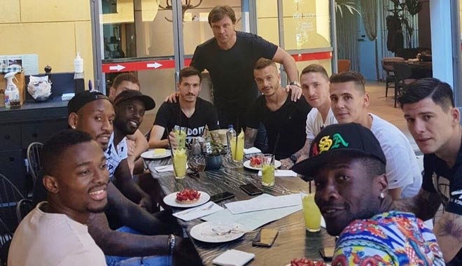 Teknik Direktör Ertuğrul Sağlam ve yardımcıları, Sportif Direktör Erdem Kemaloğlu ve futbolcular, kafede bol bol sohbet edip neşeli dakikalar yaşadılar.