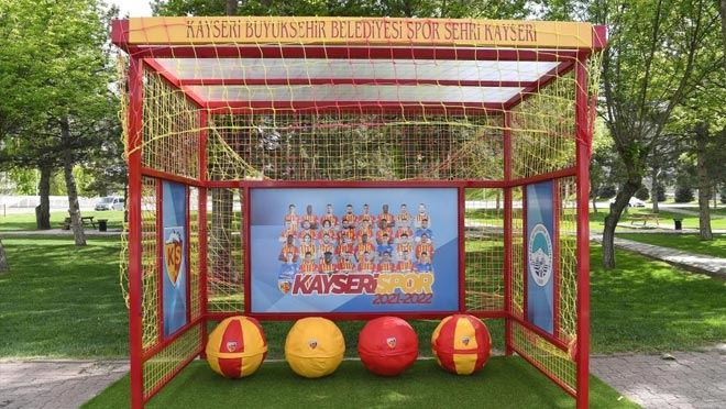 Büyükşehir Belediyesi, Kayseri’ye özgü anlayışlarla hizmetlerine devam ederken diğer yandan Kayseri’nin markası Yukatel Kayserispor için örnek bir davranış sergileyerek, Kayserililere sürpriz yaptı. Bu çerçevede Büyükşehir Belediye Başkanı Dr. Memduh Büyükkılıç’ın talimatıyla Kadir Has Stadyumu’nun önüne Makina İkmal Bakım ve Onarım Daire Başkanlığı tarafından, üzerinde ‘Kayseri Büyükşehir Belediyesi, Spor Şehri Kayseri’ yazılı futbol kalesinden esinlenilen ‘Kayserispor Durağı’ yapıldı. Sarı-Kırmızı renkleriyle, futbol topuna benzer oturma yerleriyle Kayserililerden beğeni toplayan ‘Kayserispor Durağı’ vatandaşlardan tam not aldı.