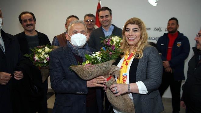 Kayseri Büyükşehir Belediye Başkanı Dr. Memduh Büyükkılıç’a, Yukatel Kayserispor-Konyaspor maçı öncesi sarı kırmızılı takımın başkanı Berna Gözbaşı tarafından 14 Mart Tıp Bayramı dolayısıyla çiçek takdim edildi. Gözbaşı, Başkan Büyükkılıç’ın Tıp Bayramı’nı kutladı.
