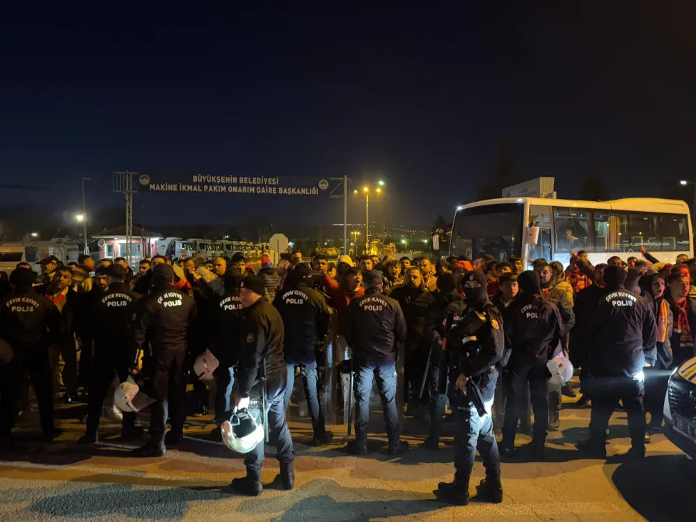 Oyuncuları taşıyan takım otobüsünün kulüp tesislerine gelişinde tepkilerini artıran taraftarlar, kapıda önlem alan çevik kuvvet ekiplerince durduruldu.