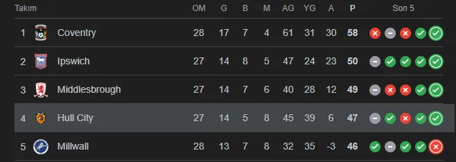 Son haftalardaki performans ise dikkat çekici. Hull City, ligde oynadığı son 5 maçta 3 galibiyet, 1 beraberlik ve 1 mağlubiyet alarak form grafiğini yukarı çekti. Bu seri, Jakirović’in takım üzerindeki etkisini bir kez daha gözler önüne serdi.