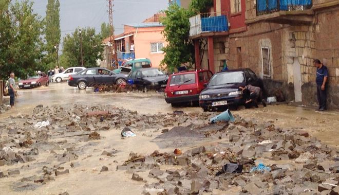 Güneybatı ilçelerimizde çok sayıda ev ve işyerinde su baskınlarına neden olan sağanak yağışın en şiddetli olduğu yer, 1 vatandaşın da hayatını kaybettiği Yeşilhisar ilçesi olurken, çok sayıda araç ile motosikleti önüne katıp sürükleyen sel suları, yollardaki parke taşlar ve asfaltları da yerinden söktü. İlçe halkı yaşanan bu elim olayı ?Afet´ olarak nitelendirdi.