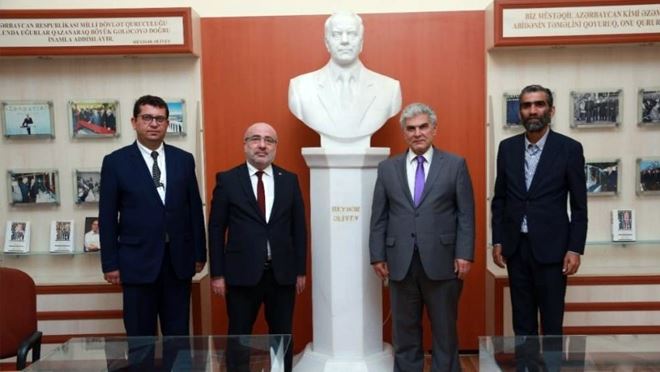 Ardından Azerbaycan Avrasya Üniversitesi’ne geçen Rektör Prof. Dr. Kurtuluş Karamustafa, Avrasya Üniversitesi Rektörü Prof. Dr. Prof. Dr. Nazım Hüseynli ile iki üniversitenin eğitim ve işbirliği protokolüne imza attı.