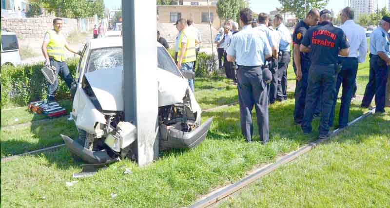 Kayseri’de otomobilin tramvay direğine çarptığı kazada ağır yaralanan 2 kişiden biri hayatını kaybetti.