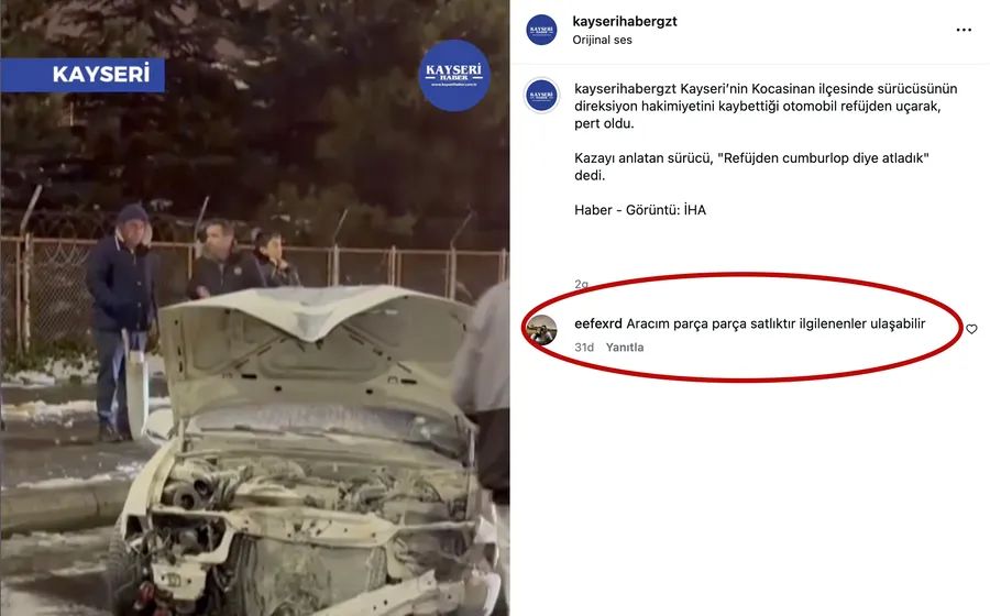 Kazanın haberleştirilmesinin ardından sosyal medyada paylaşılan bu içeriğin altına yorum yapan sürücü, bu kez esprili yaklaşımıyla dikkat çekti. Genç sürücü, kaza yapan aracı için: “Aracım parça parça satılıktır, ilgilenenler ulaşabilir” yorumunu yaptı.