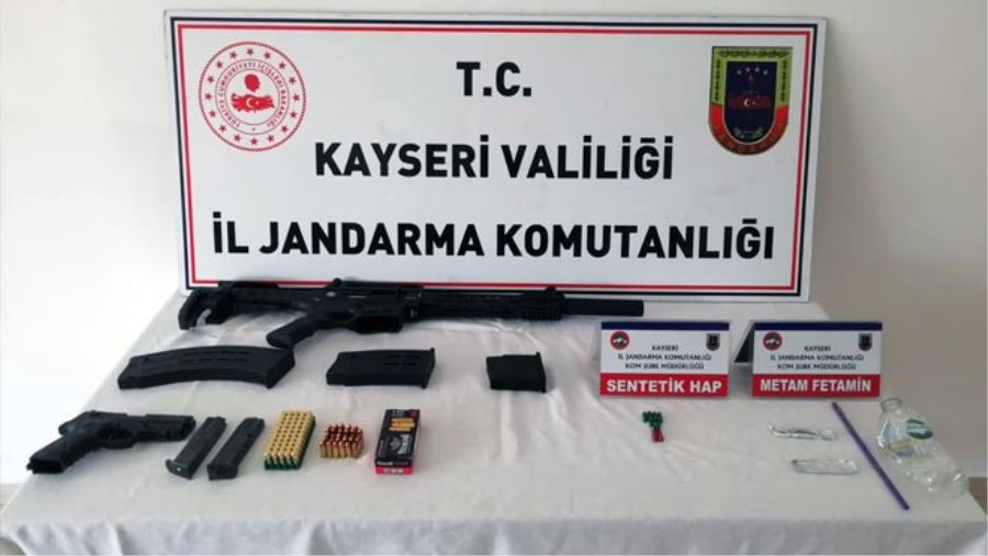 Edinilen bilgiye göre jandarma ekiplerince Talas ilçesi Malatya karayolu üzerinde kazaya karışan bir araçta arama yapıldı. Yapılan aramalarda O.A. ve E.A.'ya ait olduğu tespit edilen 5 gram metamfetamin, 10 adet uyuşturucu hap, 1 adet 9 mm tabanca, 1 adet av tüfeği, 79 adet 9 mm fişek ve 5 adet şarjör ele geçirildi. Olayla ilgili O.A. ve E.A.'nın hastanedeki tedavilerinin devam ettiği öğrenildi.