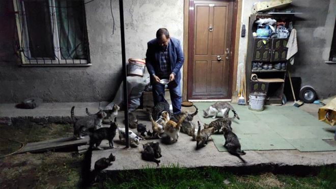 Halk arasındaki lakabı "kedilerin babası" olan Cemal Soya (58), ilçeye bağlı Yukarı Develi Mahallesi’nde sokakta yaşayan 80 kediyi kendi imkanlarıyla besliyor. Aynı zamanda yaralı kedilerin de bakımlarını üstlenen Soya, vatandaşların da kediler için mama desteğinde bulunmasını istiyor. Kedilere kendi imkanları ile elinden geldiğince yardımcı olmaya çalıştığını söyleyen Soya, "Bu sokak kedilerine kendi imkanlarımla, elimden geldiğince yardımcı olmaya çalışıyorum. 80 tane kedi var, acıktıklarında buraya gelip mamalarını yiyorlar, sonra tekrar gidiyorlar. 10-15 tanesi burada kalır, geri kalanı sadece mama yemeye gelir. Gece gelen misafirleri saymıyoruz zaten. Mahallede tanıdıklar bana 'kedilerin babası' der, kedilere baktığım, onlarla ilgilendiğim için. Biz elimizden geldiğince kedilerle ilgileniyoruz, hayırsever vatandaşlarımızdan yardım bekliyoruz, mama yardımında bulunmaları yeterli bizim için. Kış geliyor, havalar soğuduğu için buradaki hayvanlarda gün geçtikçe çoğalacak" dedi.