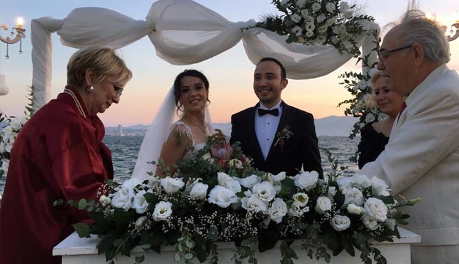 İzmir Körfez´de Saime Sultan Yalısı´nda muhteşem bir düğünle mutluluğa evet diyen genç çifti yakınları yalnız bırakmadı.