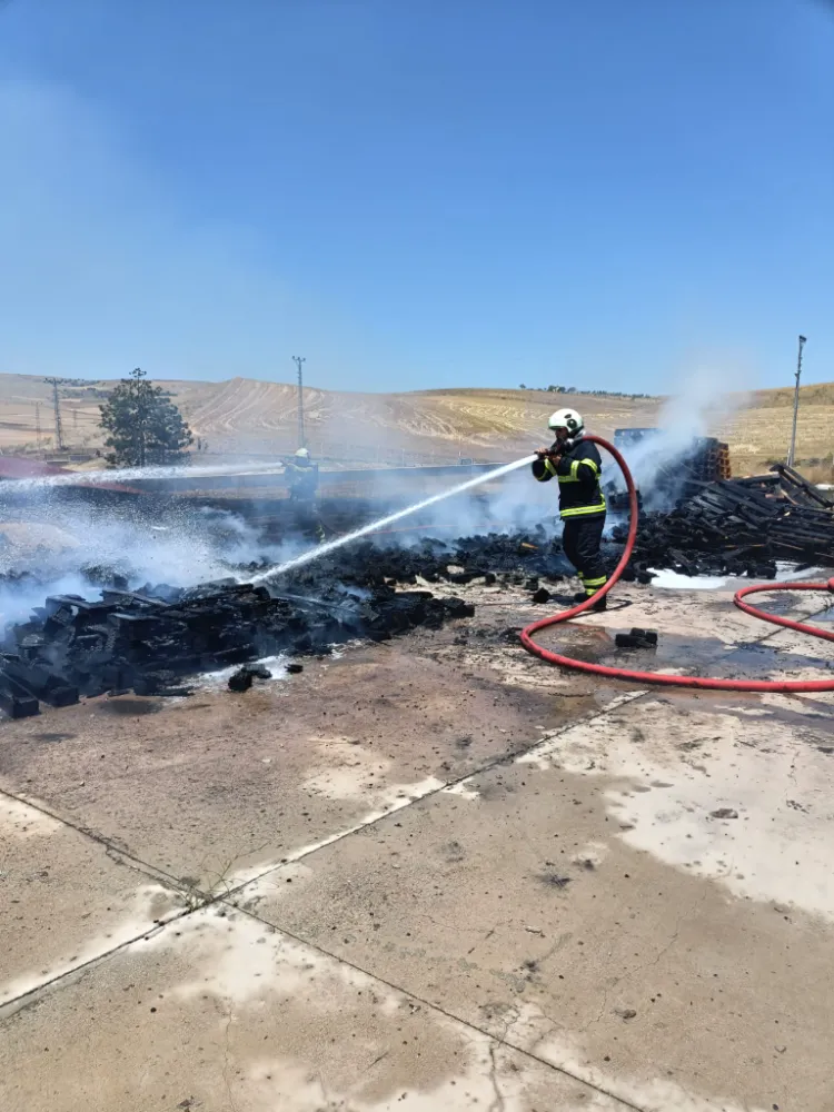 Akşemsettin Mahallesi'ndeki mobilya firmasına ait deponun ahşap taşıma kasaları ile gıda ürünlerinin bulunduğu bahçesinde henüz belirlenemeyen nedenle yangın çıktı.