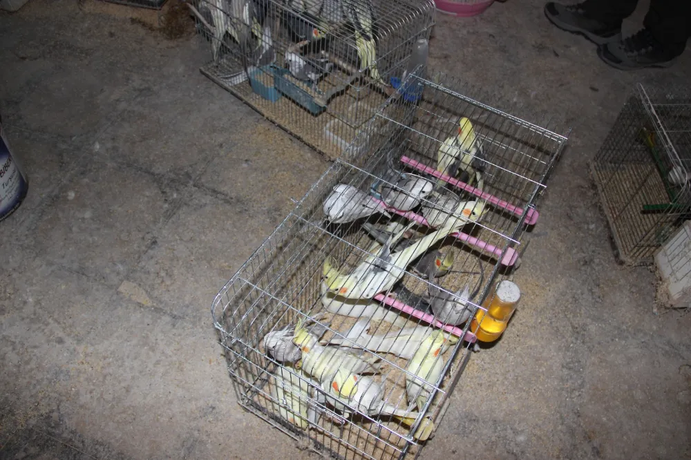 Polis ile Doğa Koruma ve Milli Parklar Şube Müdürlüğü ekiplerince depoda yapılan aramada 36 sultan papağanı, 24 ispinoz, 4 java ispinozu, 1 sevda papağanı ve 1 şarkıcı papağan ele geçirildi.